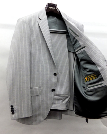 中国縫製品ですが、丁寧に仕上げた艶・しなやかさ、どれをとっても良い仕上がりのスタイリッシュなスーツ