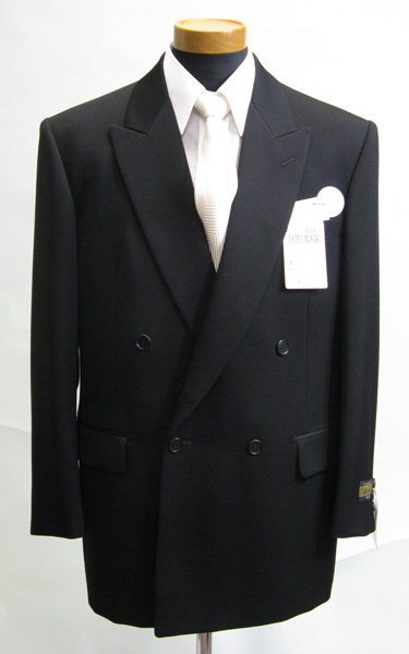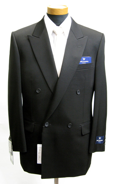 ■マリオバレンチノダブル4釦1掛 袖3釦 超黒ロイヤルタキシードクロス ワンタック アジャスタブルP W99・カーボン0.3