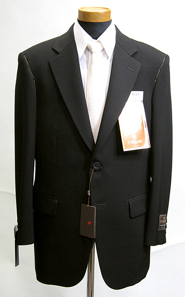 ■F.VERGANO シングル2釦 超黒最高級品 袖3釦 ノーベント ほこり防止 本バス毛芯 オーダーメイド仕様 16ミクロン最高級カシミアブレンド W84.7・カシミア15・カーボン0.3% ワンタックアジャスタブルP