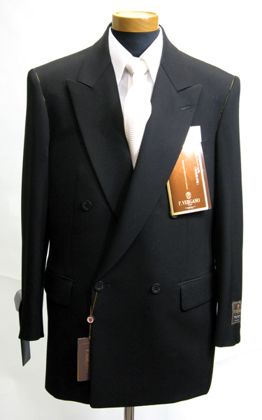 ■F.VERGANO ダブル4釦 1掛 超黒最高級品 袖3釦 ほこり防止 本バス毛芯 オーダーメイド仕様 16ミクロン最高級カシミアブレンド ノーベント ワンタックアジャスタブルP W84.7・カシミア15・カーボン0.3%
