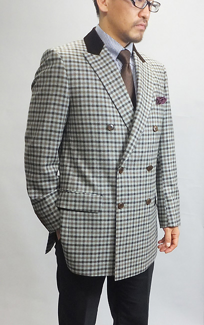○2釦ジャケット ブラウンチェック生地 袖3釦