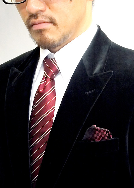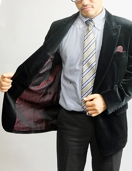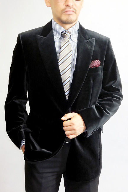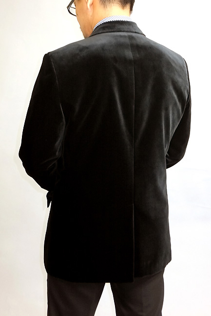 ドイツを代表するトップクラスのベルベットテキスタイルメーカー生地で光沢のブラックジャケットを仕立てる
