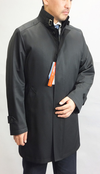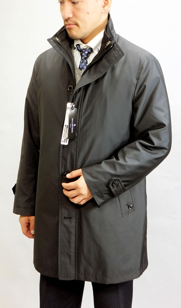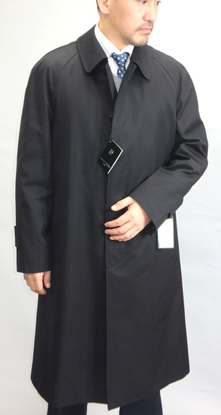 ブラックラグランコート ライナー取りはずし可。袖ベロ付 前立て比翼 裏地pierreエンボス入り